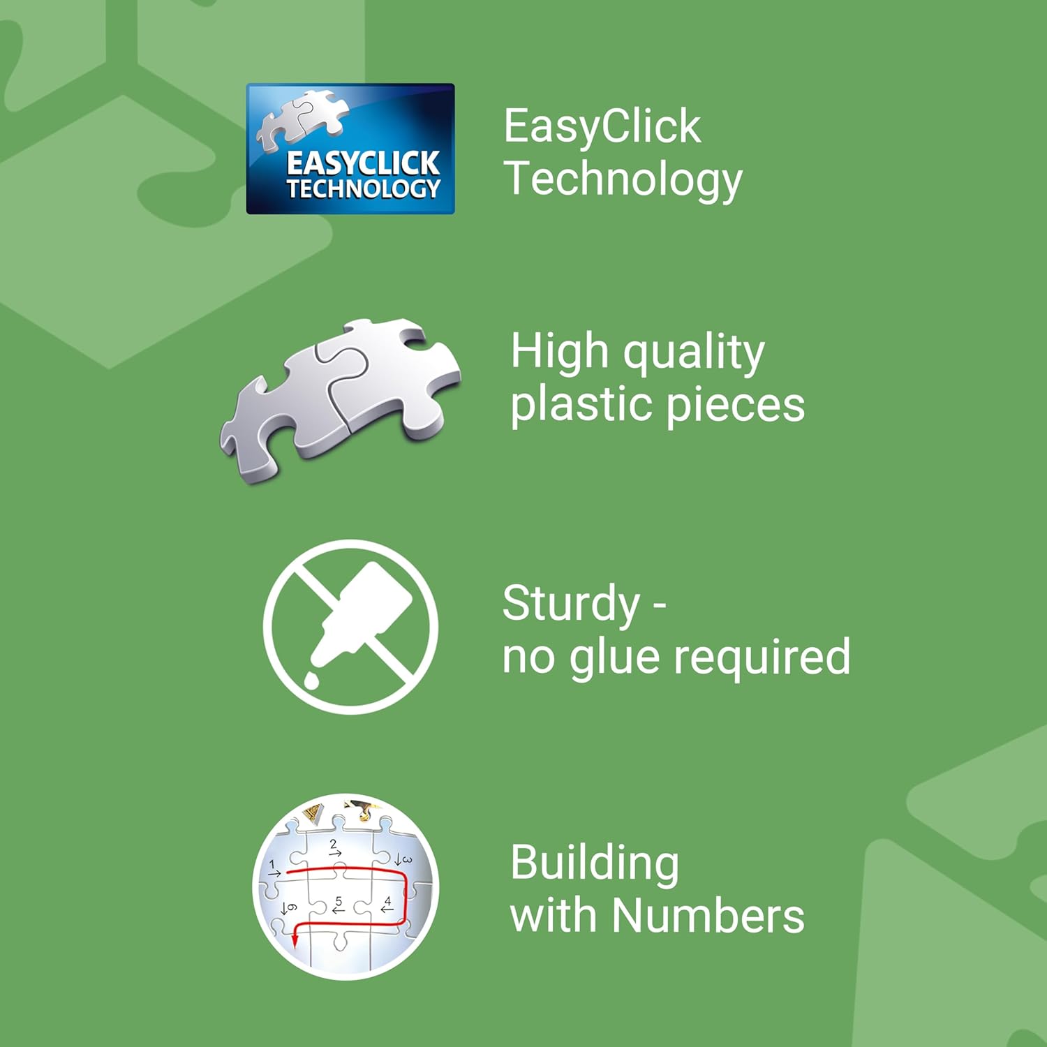 - Durable, sturdy plastic pieces: the pieces interlock easily without glue. Get creative, or use the numbers on the back of the pieces for guidance!