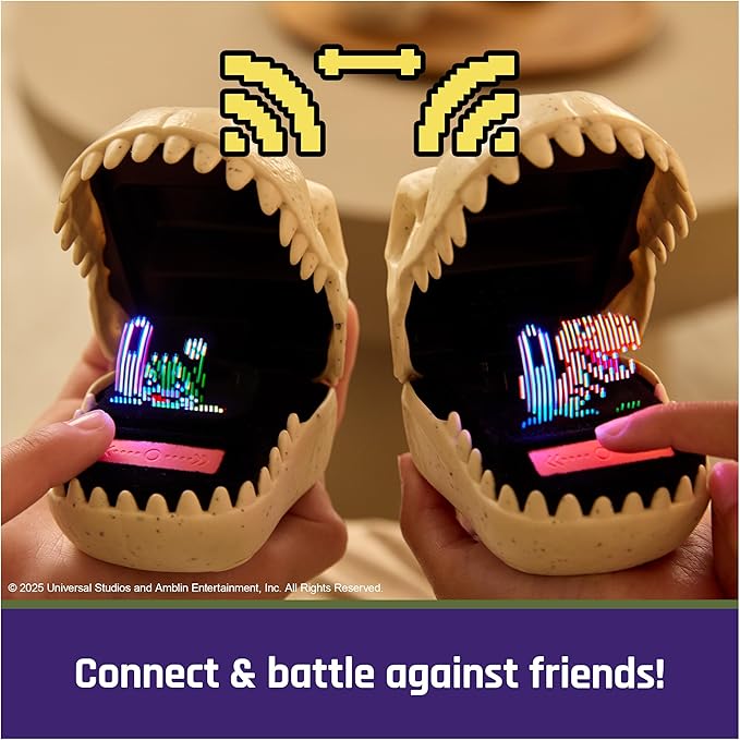 - Connect Bitzee pods and battle: Wirelessly connect two Bitzee Jurassic World pods and fight against a friend. Will you attack or defend? The winner receives amber to create and customize their dinosaurs.