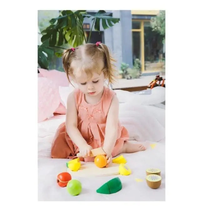 Thanks to the “velcro” between the fruits, he will also hear a cutting sound when cutting with a wooden knife, and he will like it very much.