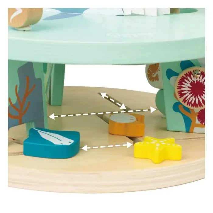 Bead maze with ocean theme. In the bead maze there are animals and plants that can move across the floor and through the bead maze. The bead maze is suitable for children from 18 months.