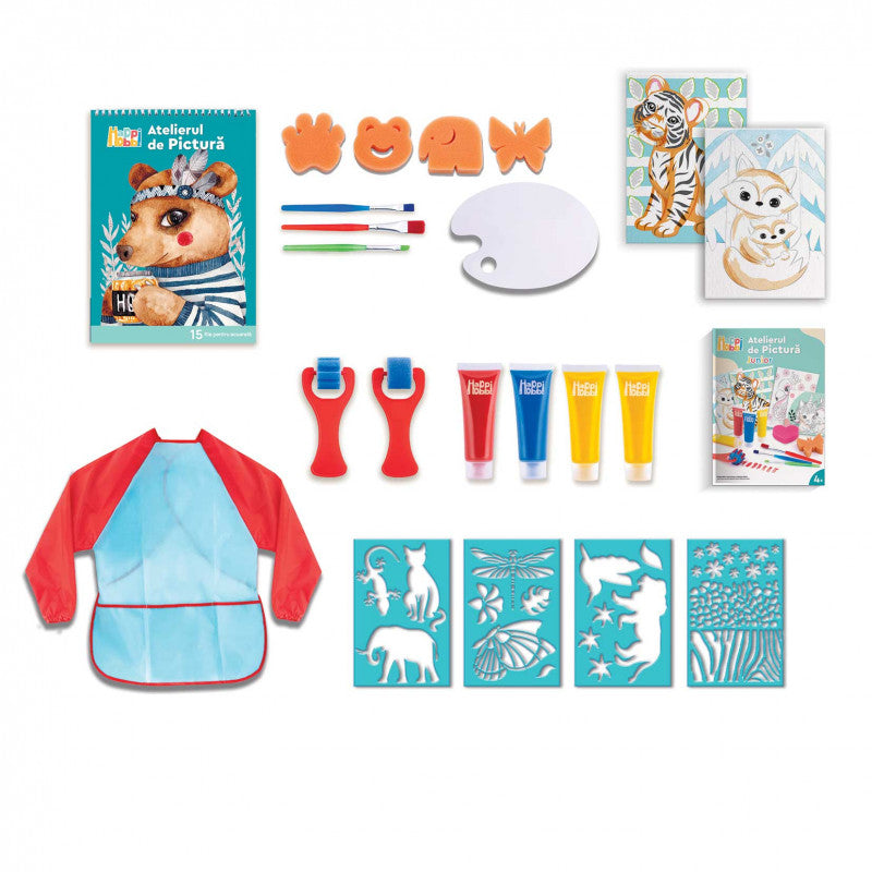 The Junior Painting Workshop is the ideal set for the child to get acquainted with the art of painting, the use of brushes, stencils and other accessories from an early age. Paint ready-made drawings from the pre-printed pages of the aquarelle drawing pad included, following the instructions of the illustrated guide, but also create your own first works of art using your imagination.