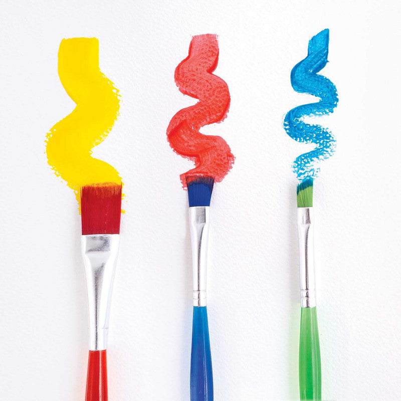 The kids wear their apron and immediately feel like real artists ready to mix colors in their palette and create beautiful designs by diving their sponges, rollers and brushes into the color palette. Kids also learns how to use stencils and create new designs, coloring them with the watercolors included.