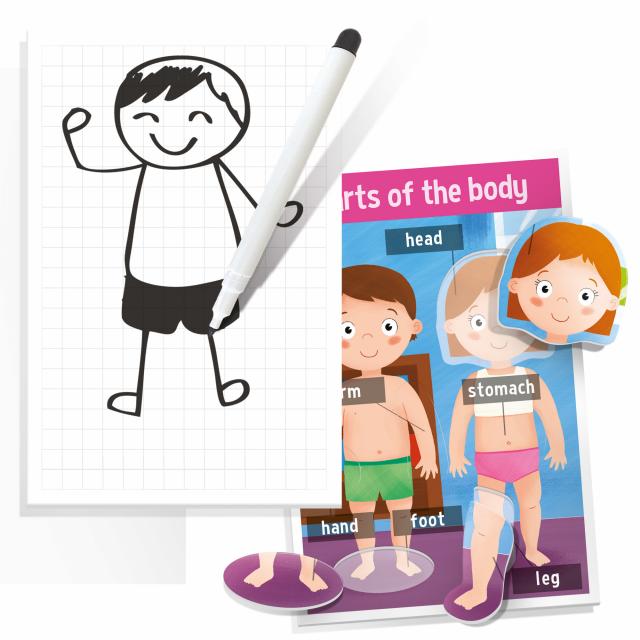 There's lots of fun to be had sorting the shapes and learning to recognize physical and emotional states and identities. Children fit the cards into their matching slots to discover parts of the body, the five senses, facial expressions and much more! Then draw the human body on the whiteboard.