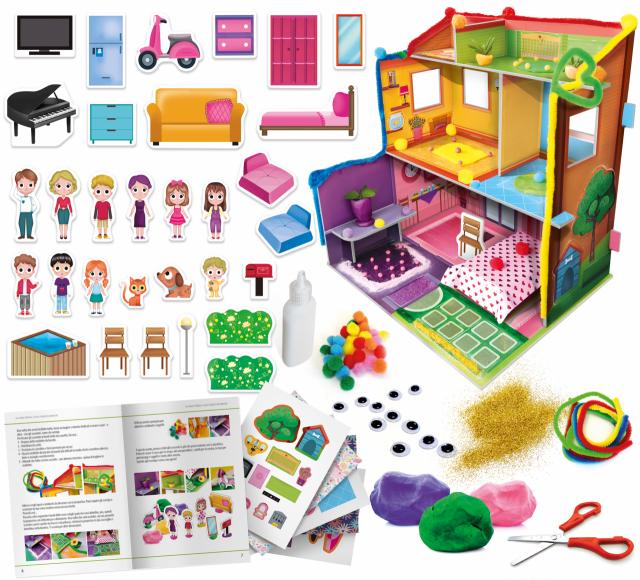 Construis ta maison de poupée et libère ton imagination et ta créativité avec ce kit riche en matériel. Tu peux animer les personnages et inventer une foule d’histoire !