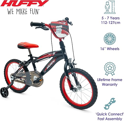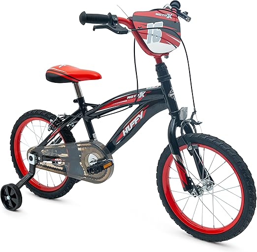 - Huffy The Moto X 16" boys bike comes with a racing license plate, cool graphics, and as a bike with stabilizers, can be used by both beginners and advanced cyclists.
