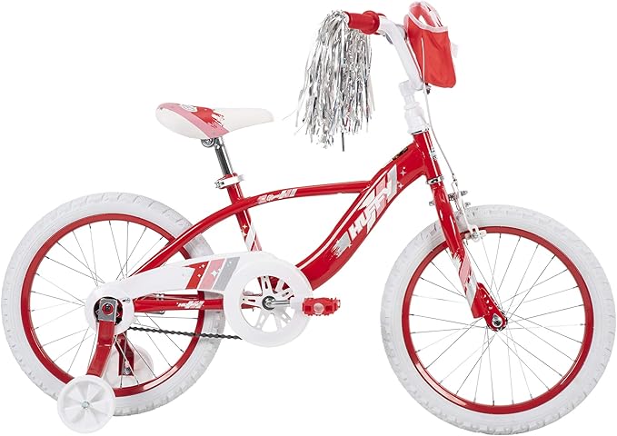 - The 18-inch girls' bike with removable training wheels is ideal for beginner riders; ideal for ages 4 to 8 with a rider height of 42 to 49 inches; details like shiny streamers make it even more fun