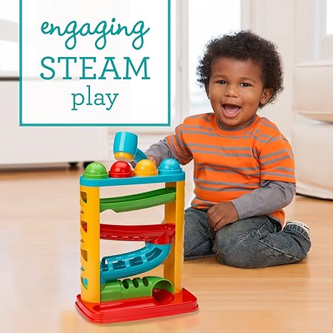 - Engaging steam play set for curious little minds: Your baby will love self-activating this engaging ball drop with two slides and two peek-a-boo tunnels. They can also match the balls to the ball rings by color.