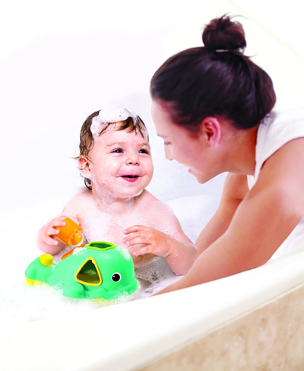 Add a splash of fun to bath time with the Infantino Orca the Whale! This adorable shape-sorting spraying whale lets babies explore and learn while having fun. With four colorful shapes to sort into their corresponding slots, little ones can also use them as water scoops! Its button-activated spray that sends a gentle squirt from the blowhole is an attractive addition to the learning playtime! Babies develop cognitive thinking and hand-eye coordination by picking up and putting back the shapes. It’s sized just right for baby hands and perfect for bath time. Let your little one explore in a fun way to play with Infantino Orca the Whale!