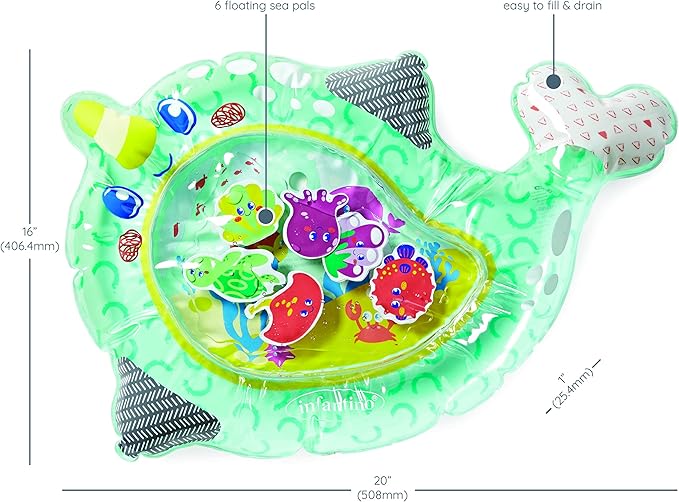 - Developmental Benefits: The mat helps baby engage head and neck muscles while encouraging grasping and batting to refine motor skills with floating sea friends.