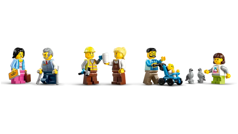 - What’s in the box? – All kids need to build a toy train station and a maintenance railcar equipped with a raisable cherry picker, plus 6 minifigures, a baby figure and 2 pigeon figures for role play