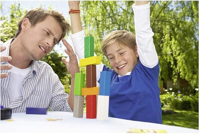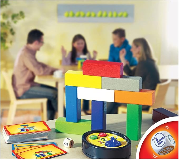 - What you get: Make 'N' Break comes with 10 building blocks, 80 double-sided cards, 1 timer, 1 time die, 1 action die, 1 card tray and instructions (Spanish language not guaranteed).
