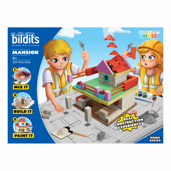 Bring your mansion to life with this Bildits kit! Using real building materials, kids can design and constructtheir dream mansion, learning about architectural elements like roofs, walls, and more. It’s a rewardingbuilding experience that promotes creativity and attention to detail.