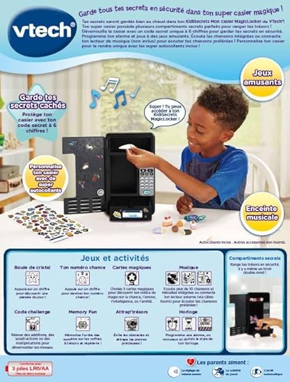 - INCLUS : 10 chansons et mélodies, 1 câble jack pour écouter sa musique depuis un lecteur MP3 et 1 planche de stickers pour personnaliser son casier et le rendre unique, Arrêt automatique du jouet, Fonctionne avec 3 piles LR6-AA fournies