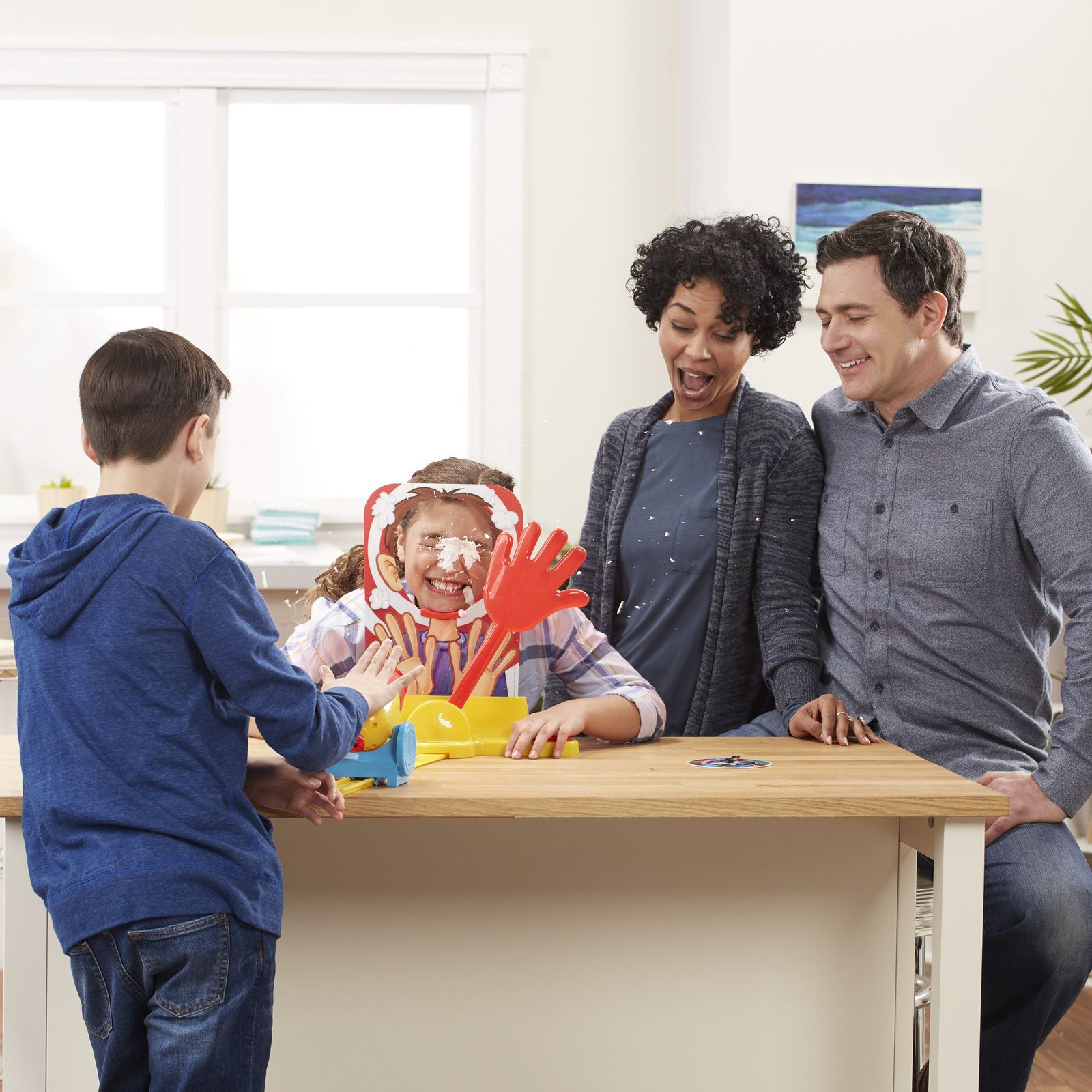 Game that uses whipped cream: The Pie Face Cannon kids' board game is a real blast; get ready for loads of laughs and share hilarious moments when someone gets pie-faced (Whipped cream not included; additional purchase required)