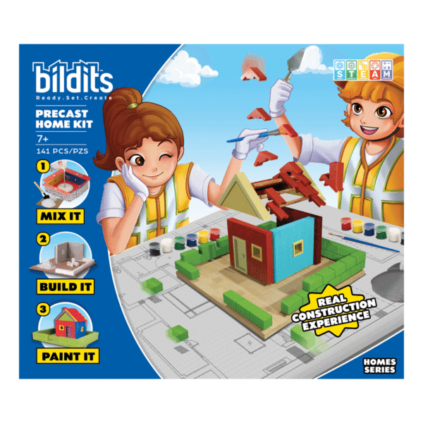 Elevate your building skills with the Precast Home Kit! Explore the innovative precast construction technique,where components like walls are made off-site and then assembled to create a durable home. Using realbuilding materials, kids will learn how this efficient method is used in modern construction while creatingtheir very own strong, sturdy structure