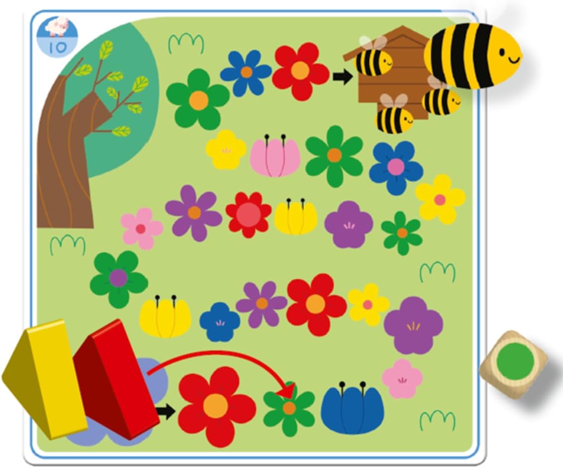 - Contenu: 10 planches recto-verso, des jetons, 8 cartes de memory, 4 cubes, 9 formes en plastique, 4 bacs de rangement et 1 dé. Ce produit est composé de matériaux issus de forêts bien gérées certifiées FSC, de matériaux recyclés et de matériaux issus d’autres sources contrôlées (FSC-C111262). Produit imaginé en France et fabriqué en Europe