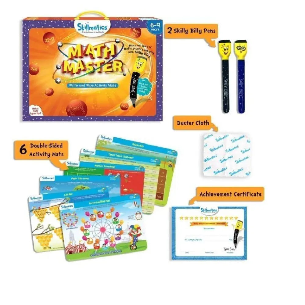 WHAT'S INSIDE ? 6 double-sided activity mats, 2 Silly Billy markers, 1 duster cloth and 1 achievement certificate.