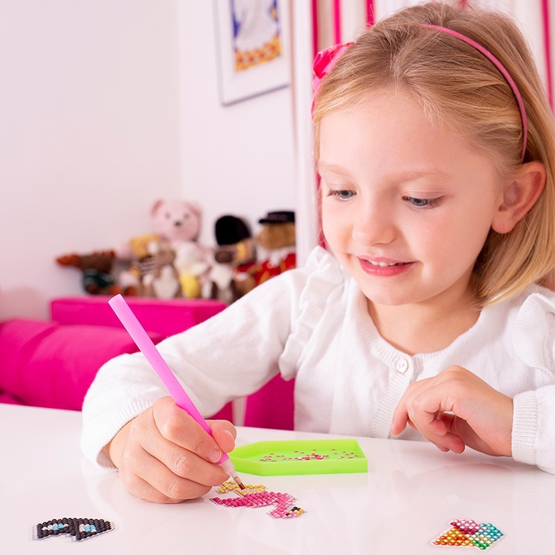 The small provided pen will help you pick up each diamond to transfer it onto the adhesive surface. Each square has a letter that corresponds to a diamond colour; it is therefore very easy to follow the canvas instructions in order to create dashing stickers.