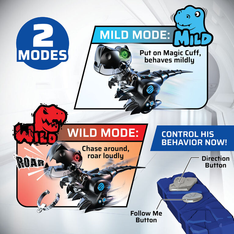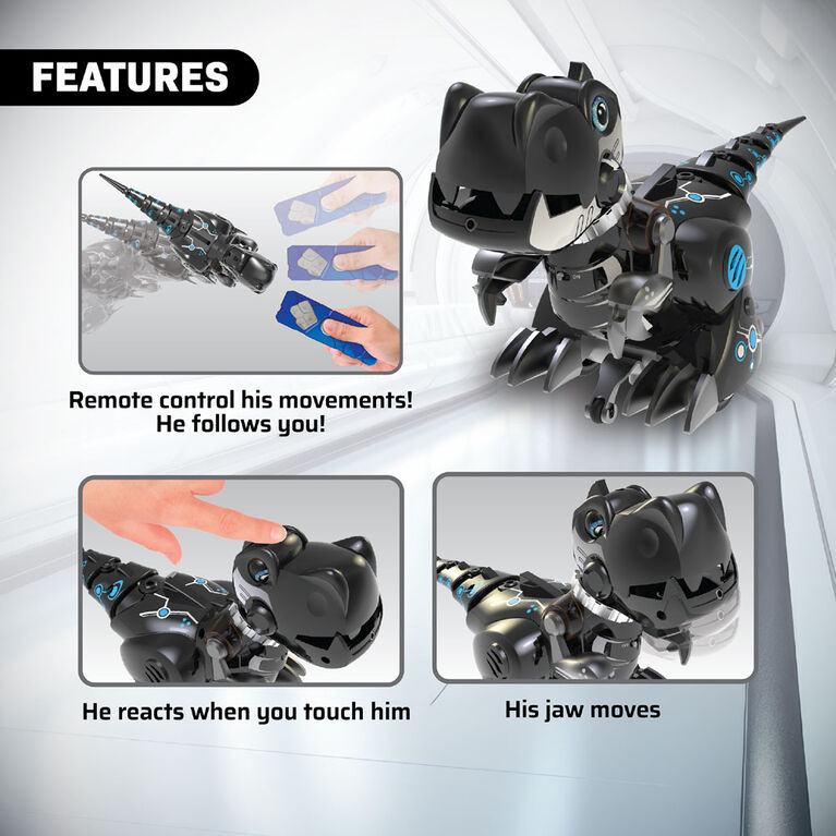 Train your Dino to follow you! He's naughty, wild and even uncontrollable but now he's ready to learn! With our remote control he'll follow you like a pet, play with him and touch his head he'll respond to you. Train My Dino is your wild pet dinosaur!
